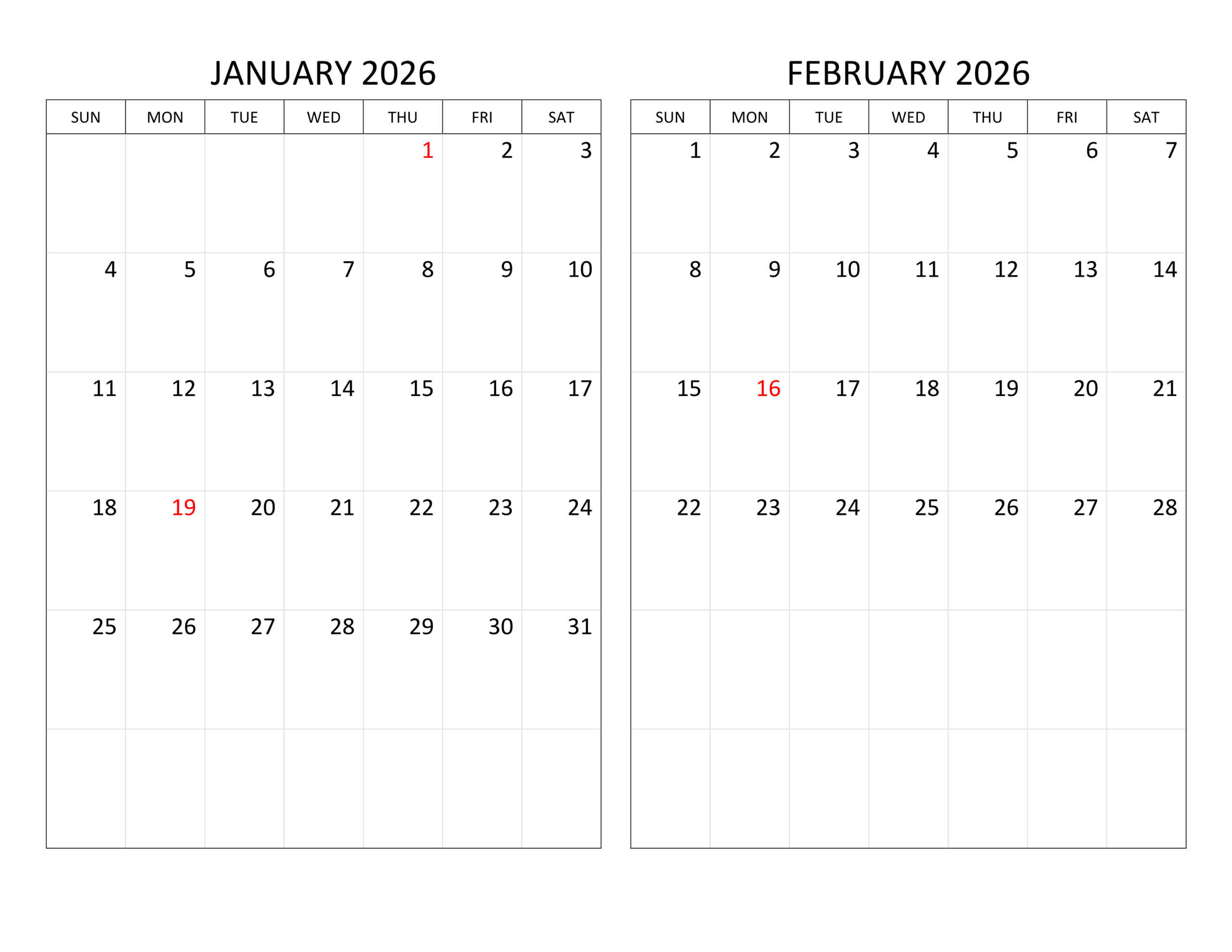 January and February 2026 CalendarBy CS / January 8, 2026 Click to rate this post! [Total: 0 Average: 0]