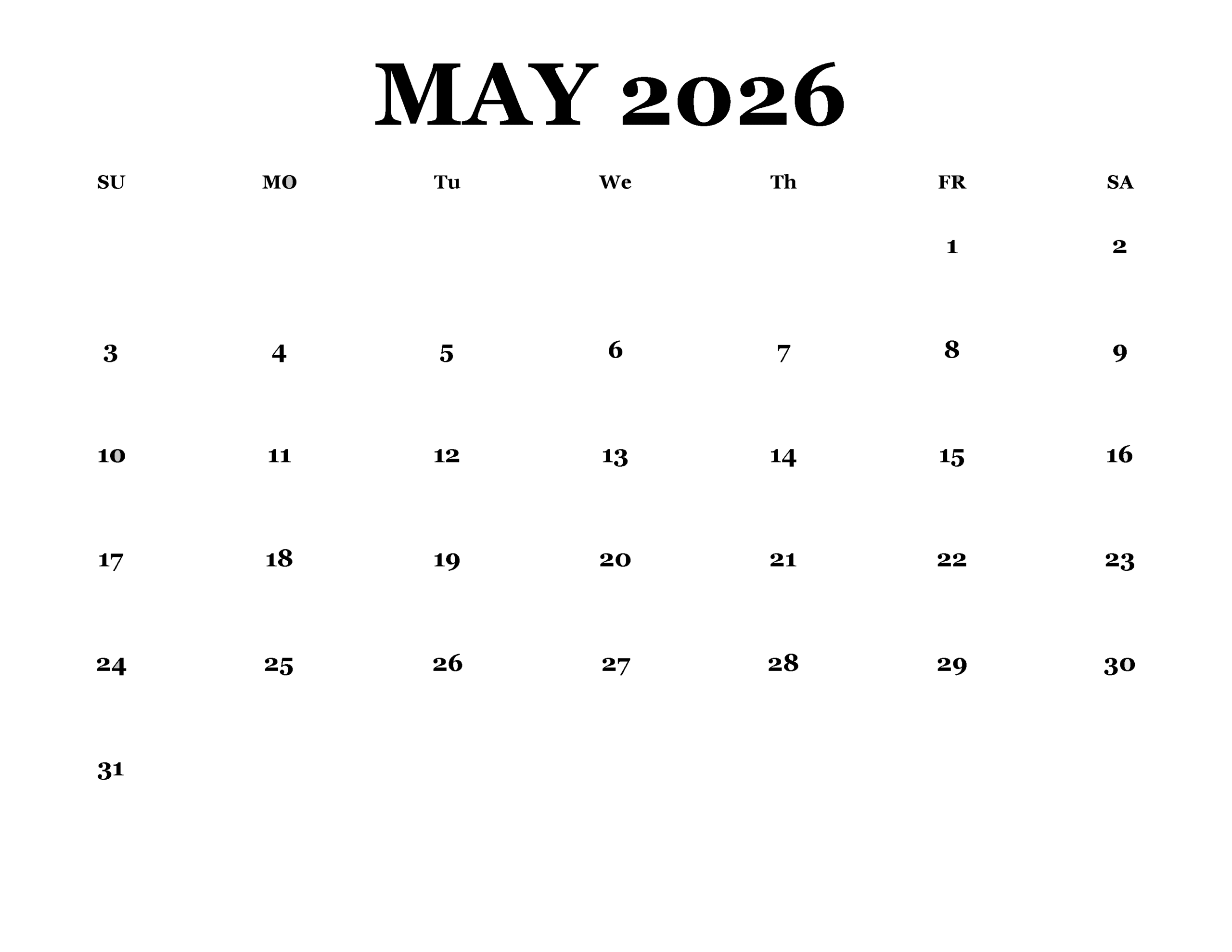 Free 2026 May Blank Calendar